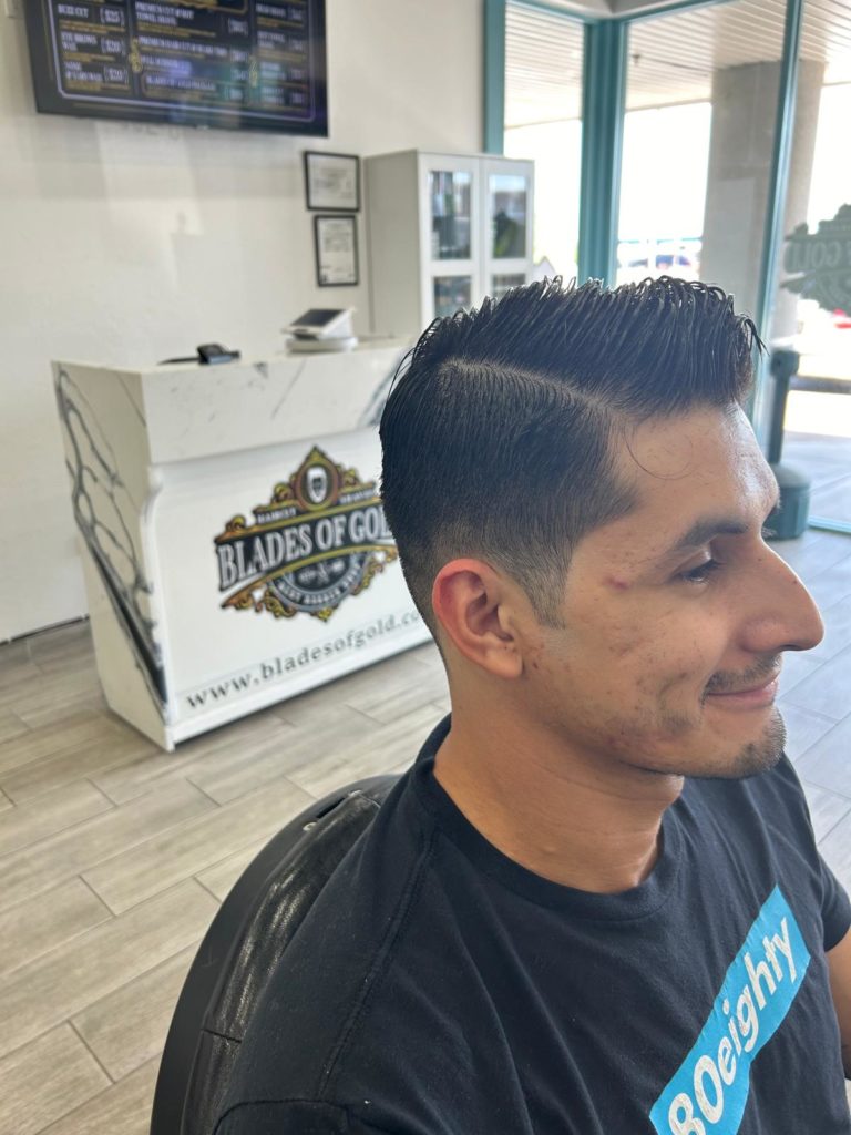 At Blades of Gold®, we blend traditional barbershop charm with contemporary haircuts and grooming services for the gentlemen of North Phoenix. From hot towel shaves and trendy haircuts to precision straight razor shaves, we offer classic grooming in a stylish, modern setting. Experience the Blades of Gold® difference—where every visit is more than just a haircut. Our skilled barbers are dedicated to their craft, creating an ambiance that transforms each appointment into a true gentleman’s experience.