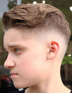 Similar to the fade but with a sharper transition from short hair on the sides to long hair on the crown. This style is better for older boys since it requires daily styling. But the result? Absolutely cool!
